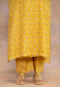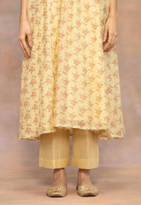 Rosalie Blue Sanganeri Chanderi Silk A Line Kurta with Hand Embroidery and Slip