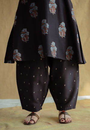 Daksha Black Ajrakh Chanderi Silk A Line Kurta with Hand Embroidery