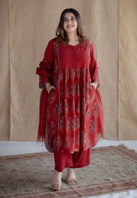 Divyathi Red Ajrakh Cotton A Line Kurta