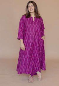 Crimson Red Ikkat Handwoven Cotton A Line Kurta.