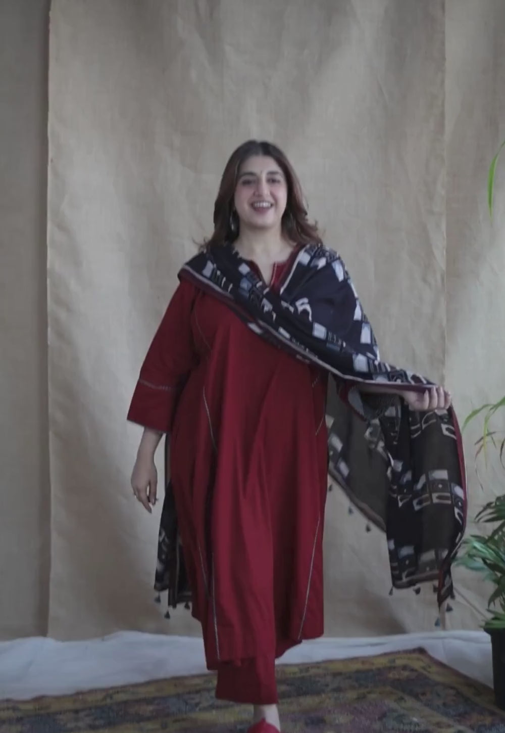Charcoal Jharoka Ajrakh Handblock Printed MulMul Cotton Dupatta.