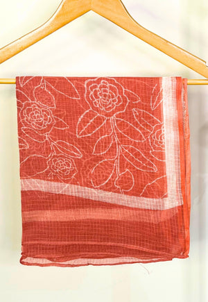 Jumana Coral Hand Block Print Slub Cotton Kali Kurta with Hand Embroidery