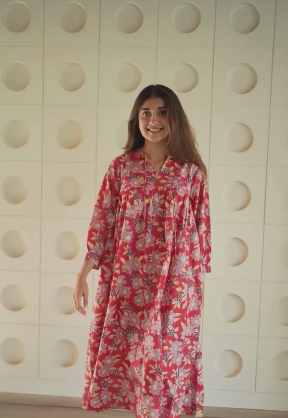 Red Sanganeri LazyDays Serene Lounge Slub Cotton Dress