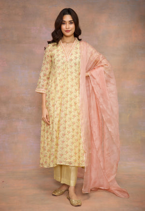 Rosa Yellow Sanganeri Chanderi Silk Kali Kurta