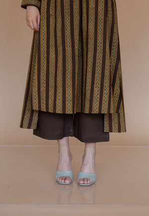 Dark Brown Ajrakh Handblock Printed Cotton A Line Kurta.