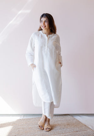White Solid Mul Cotton Straight Slip with Adjustable Straps.