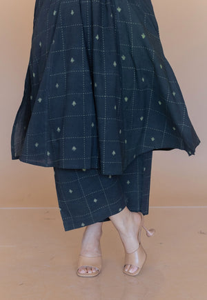 Seaweed Green Dabu Handblock Printed Cotton A Line Co-Ord Set.