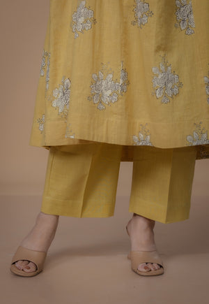 Sakhi Yellow Dabu Slub Cotton Kali Kurta