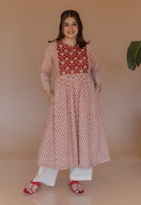 Cobalt Blue Dabu Handblock Printed Cotton Kali Kurta.