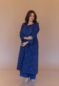 Off White Bagru Handblock Printed Cotton A Line Kurta.