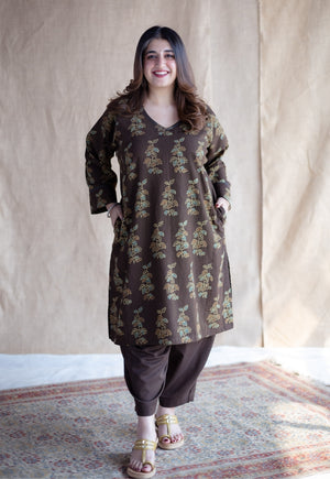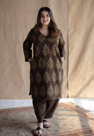 Tarin Brown Solid Slub Cotton Afghan Pant