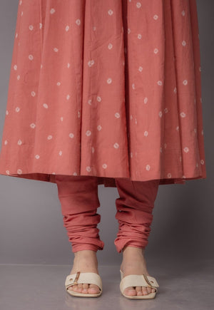 Dusty Rose Bandhani Cotton Kali Kurta.