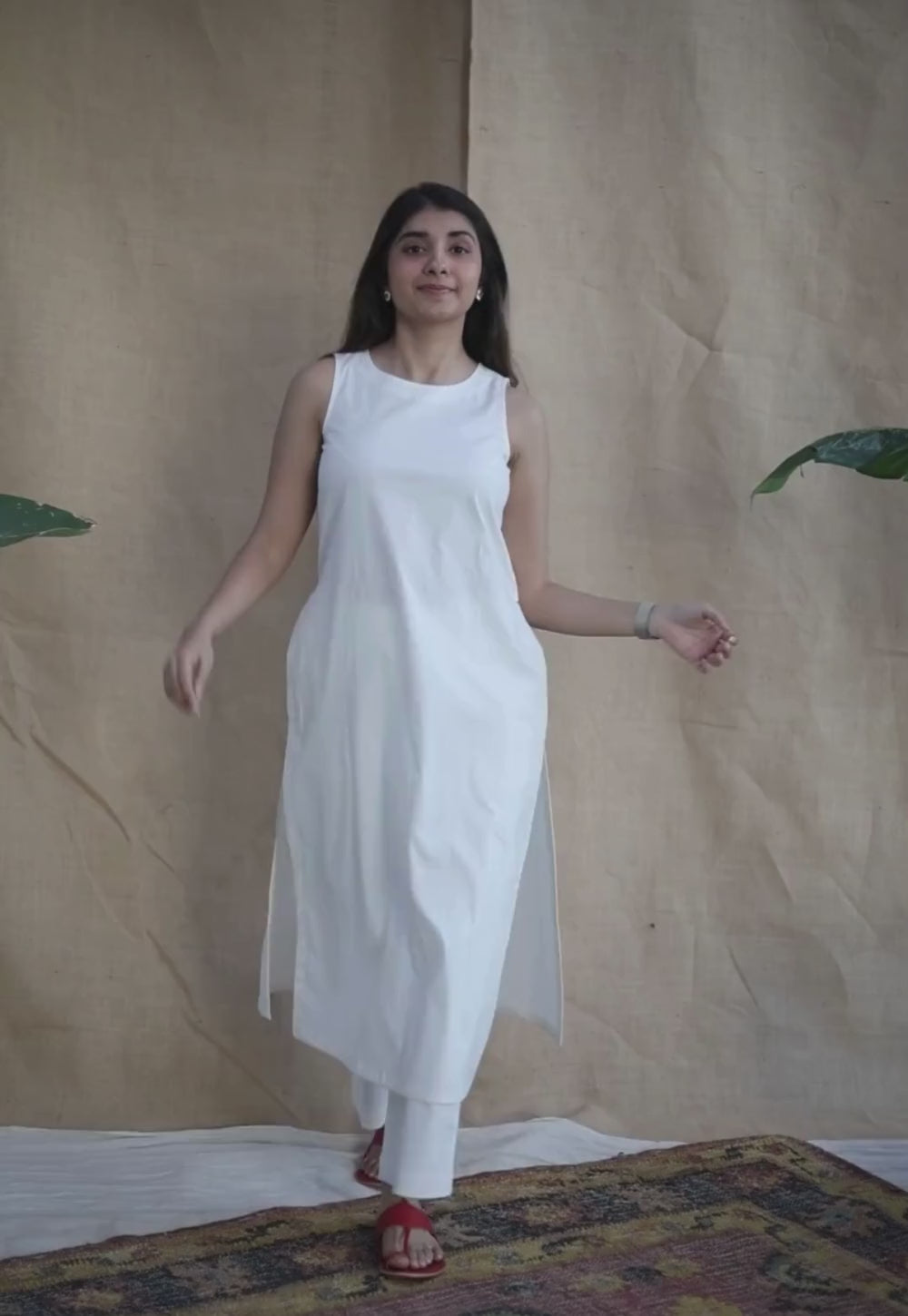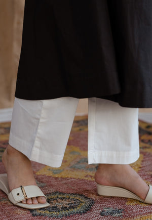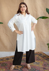 White Poplin Kurta with Machine Embroidery Details.
