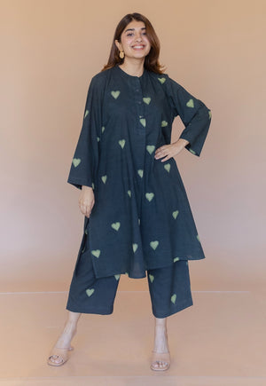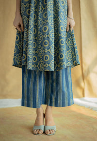 Seaweed Green Dabu Handblock Printed Cotton Straight Pant.