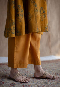Dull Yellow Solid Slub Cotton Straight Pant.